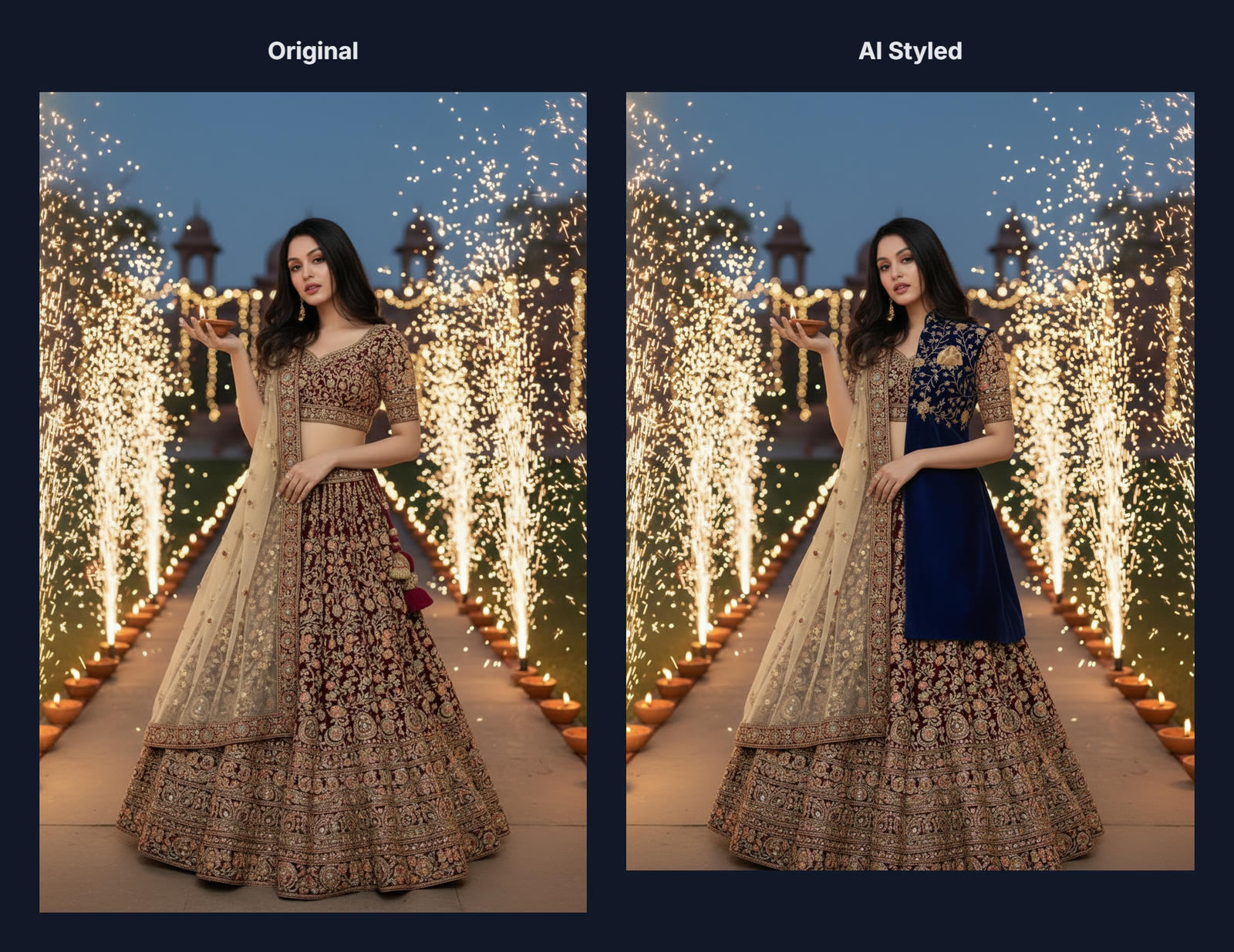 For outfits like designer sarees, lehengas, bridal wear, and embroidered blouses, Ajupy AI’s Texture Preservation Engine ensures that: